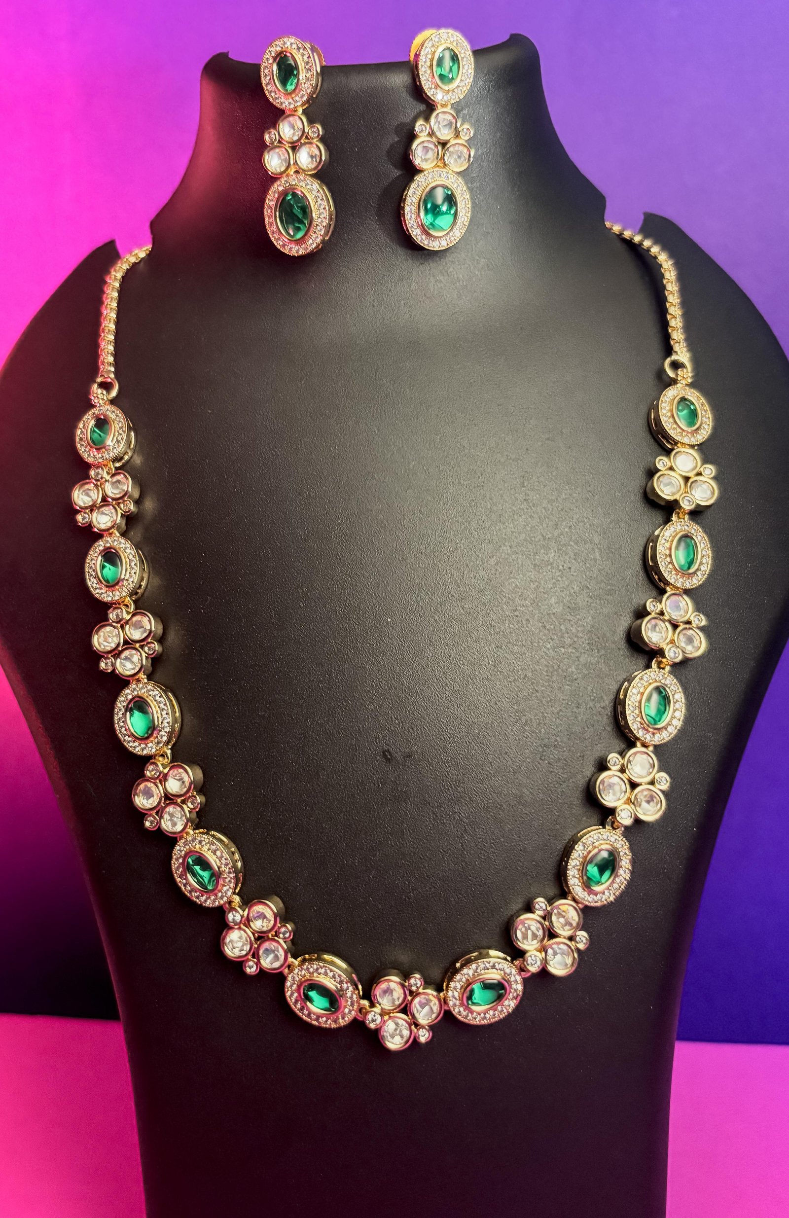 Kundan Green and White Stone Necklace and Earring Se
