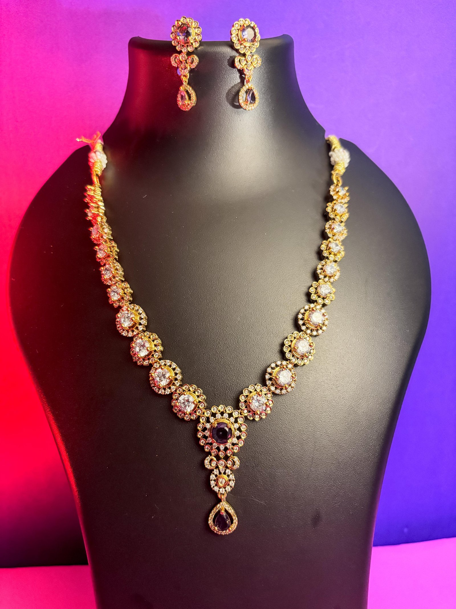 Traditional Gold-Plated Necklace and Earring Set